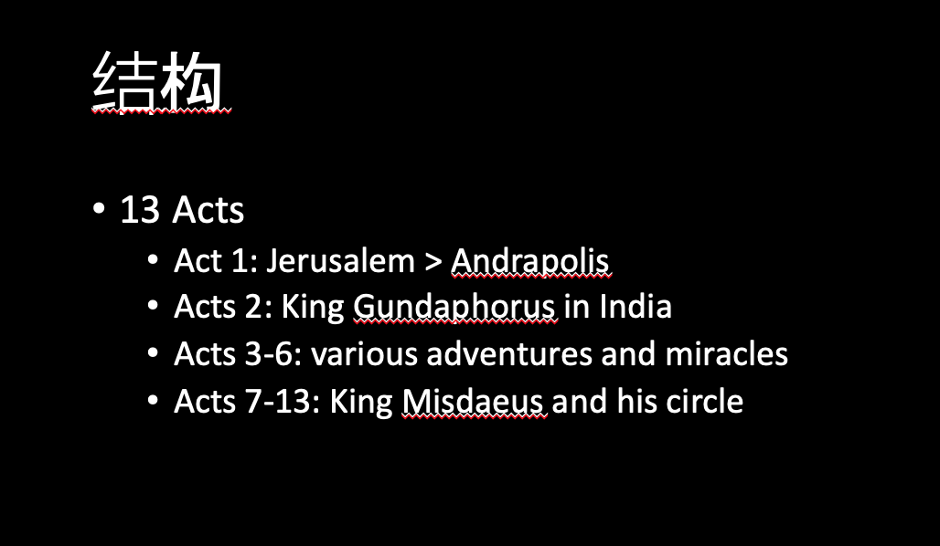 多马就是福音书中说要碰到耶稣的肋旁和手上钉痕才信的那一位。《多马行传》是公元三世纪初的叙利亚文献,很快被译成希腊文。多马被称为帕提亚(公元前247年 -224元年)人的使徒。拍提亚是继亚历山大东征后的帝国,是一个接受希腊文化,相对包容的帝国。因此,起初基督教传过去的时候,并未受到太多阻拦。