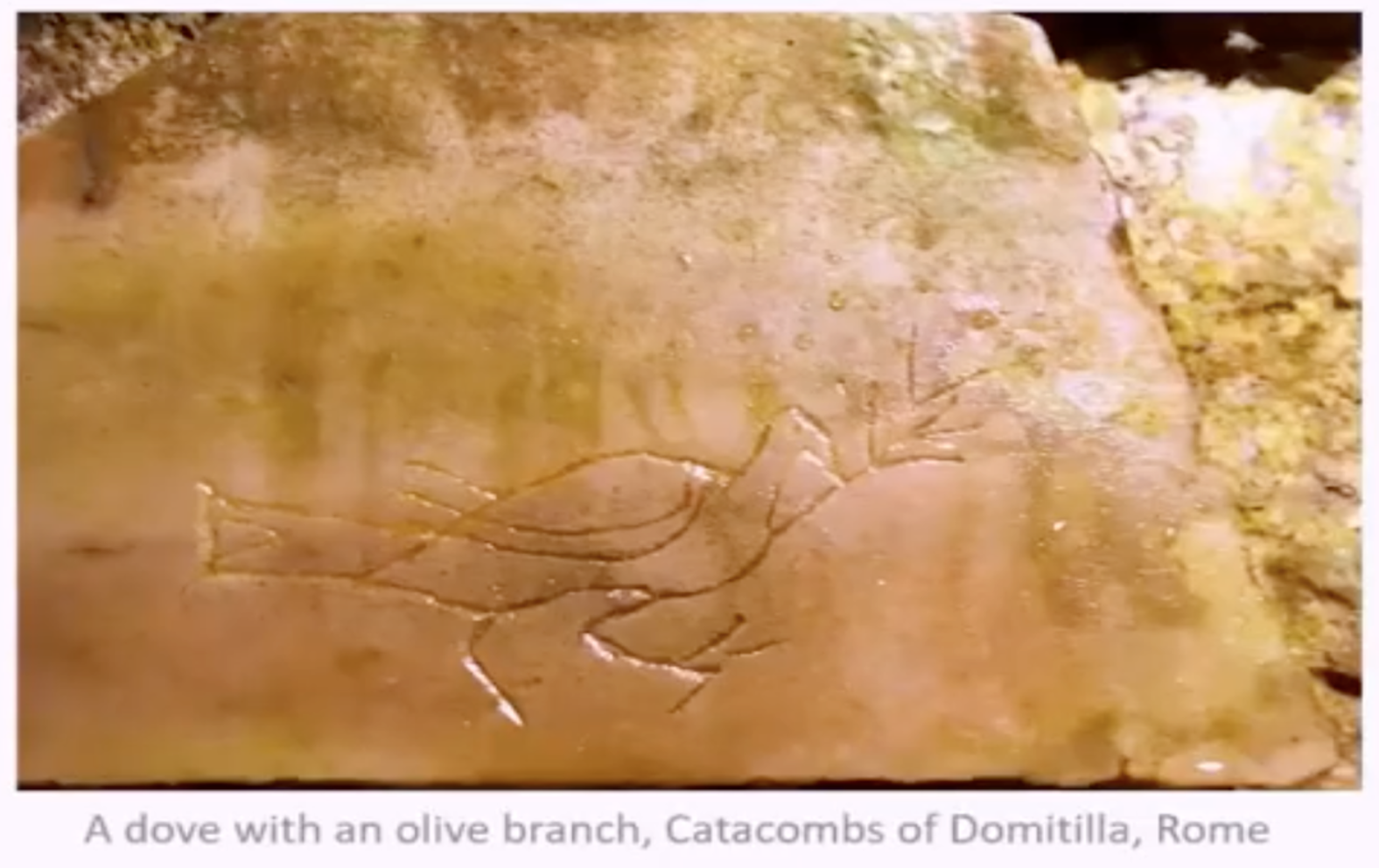 同时,在这个地下墓穴里边,我们看到了最早的一批基督教的标志。