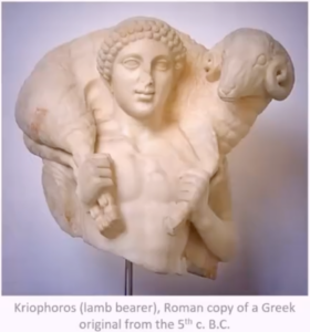 其实这种表达借用了在希腊罗马传统中已经存在好几百年的Kriophoros(lamb bearer),是一个乐善好施、帮助邻舍的概念。它被早期教会借用,去传递基督教框架内的爱邻舍的概念,是对原有观念的再传承。单看这幅壁画,罗马人可以有罗马人的解释,基督徒可以有基督徒的解释。