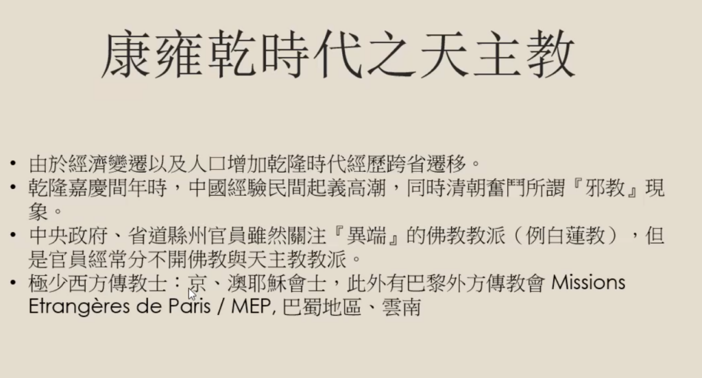 首先,我现在要给你们讲的,是这场讲座最重要的两个观点。第一,我没有刻意分开天主教和基督教。对我来说,**在19世纪的中国历史上,两者可以说是一个整体。**我今天给你们讲的基督教在华传教史,时间跨度从公元650年左右一直到20世纪。第二,我的意思是说:基督教1在中国的历史是非常古老的,它可以被看作是中国宗教的一部分。也就是说,**基督教与中国文化是不可分割的,它在中国本土宗教文化环境中的发展过程表明了这一点。**之后,我就要谈到这个观点,因为它对我来说是很重要的立场。