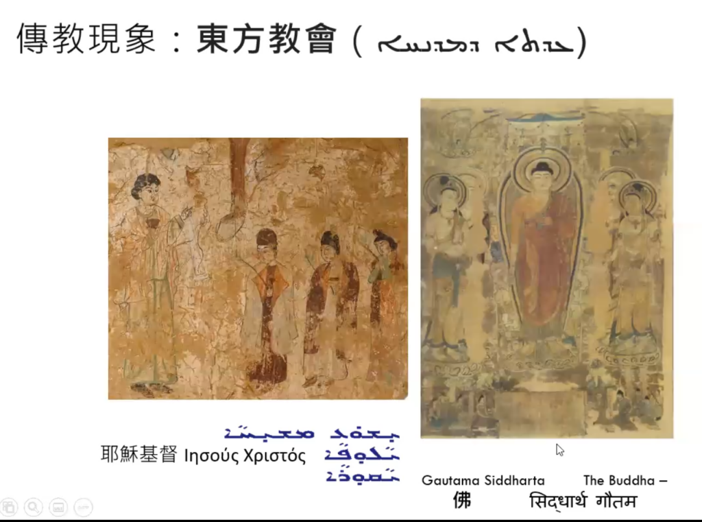 同时,有一个从西方传到中亚来的宗教,就是景教。他们所使用的这种语言(古叙利亚语),我是通过阿拉伯语学会的。这些是叙利亚人用的语言,他们用的文字(叙利亚文)和犹太人所使用的希伯来文,以及最早的阿拉伯文有很密切的关系。顺便一提,这与我在担任某个Panel Host(研究小组领导人)的时候的论文题目有关,所以我对这一段历史比较熟悉。