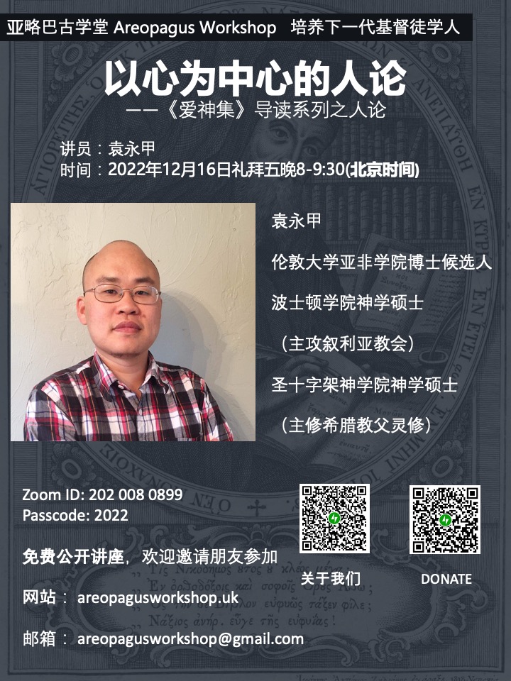 笔者《爱神集》中的译作节选《圣山尼哥底母 论心是人的中心》和《圣帕拉玛 为静修士辩护文1.2 节选》也给出了一些一手材料的证据。本讲座将进一步梳理东方教会灵修传统的人论——史料篇,即以心为中心的人论。