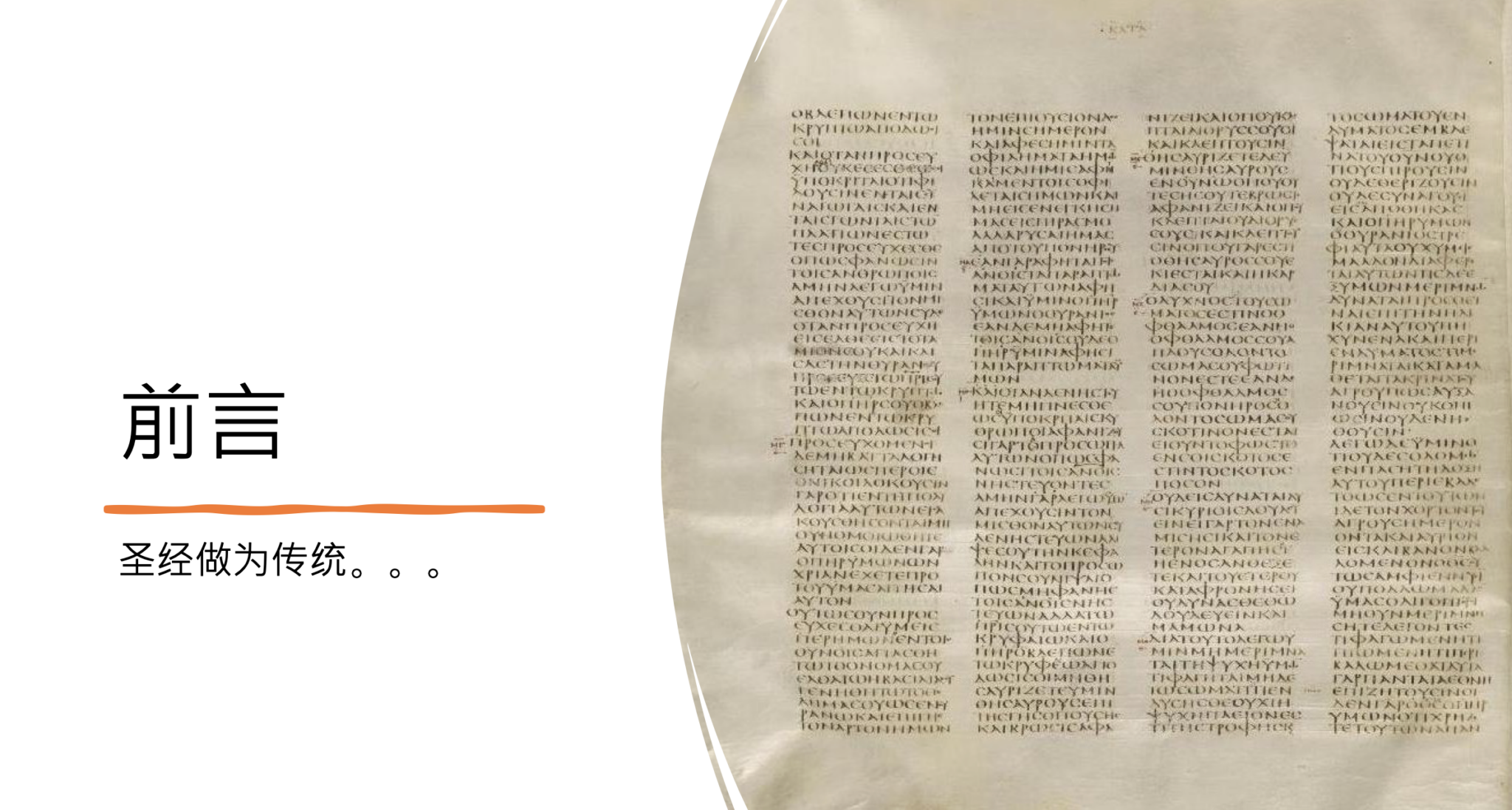 首先,教父著作中的旧约,就是我们所说的思辨,使徒和早期的教父完成了犹太教经书向基督教旧约这样的一个定向和转换,他们的贡献是非常大的,可以说有三个方面。